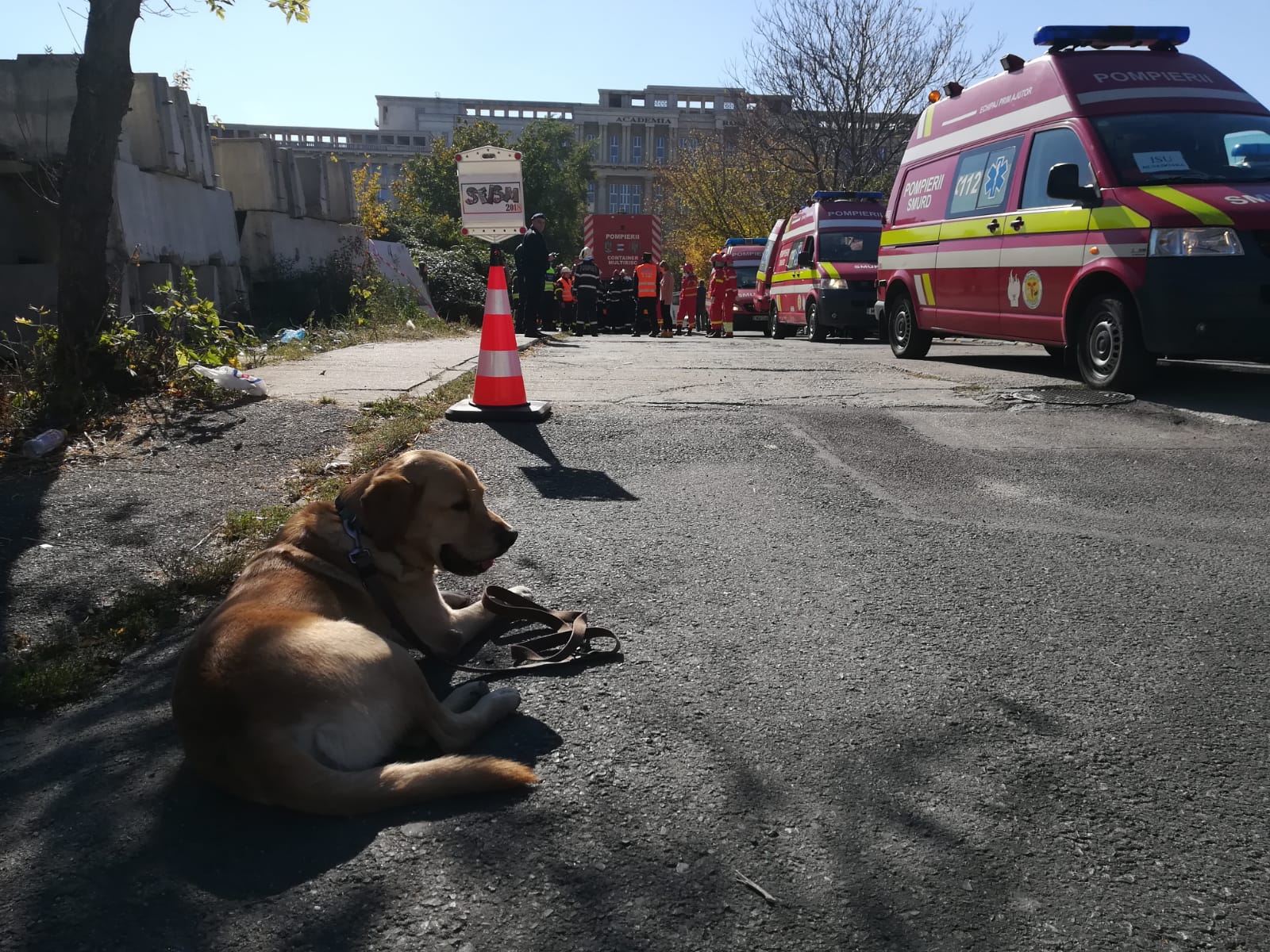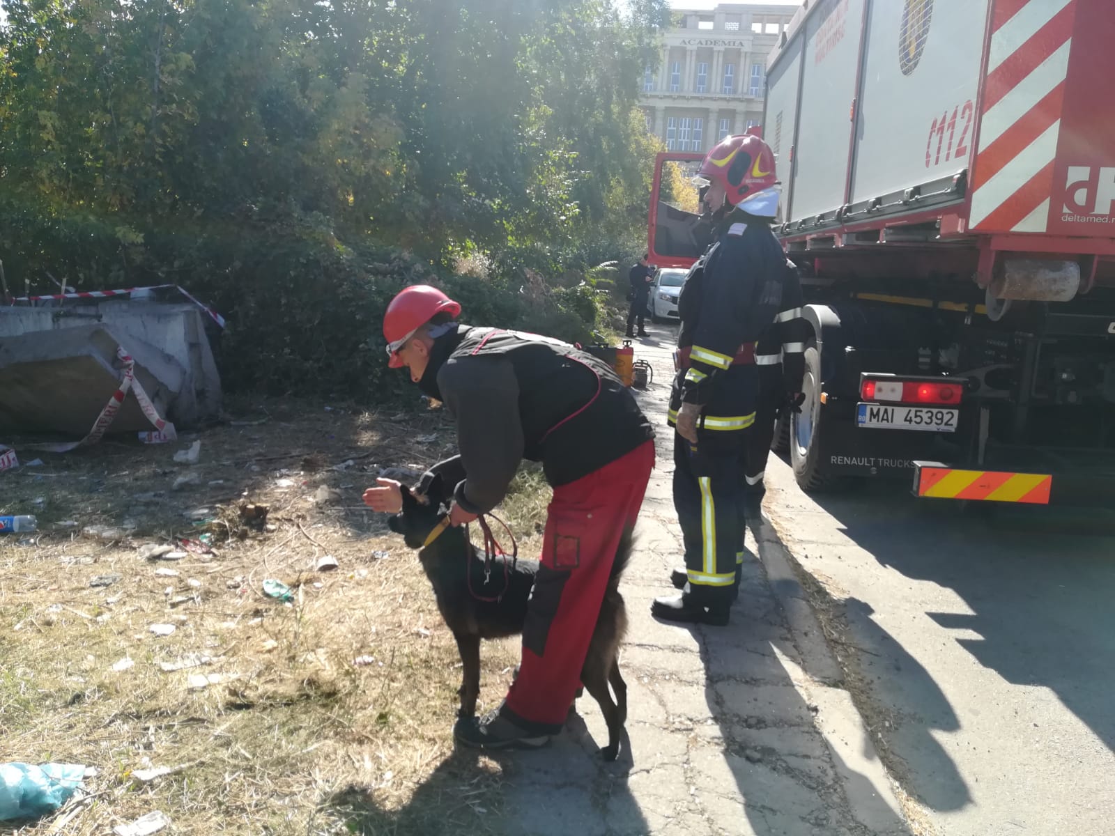 • Interventie cu doua echipe canine in Strada Franceza nr. 30, pentru identificarea a doua persoane prinse sub daramaturi.