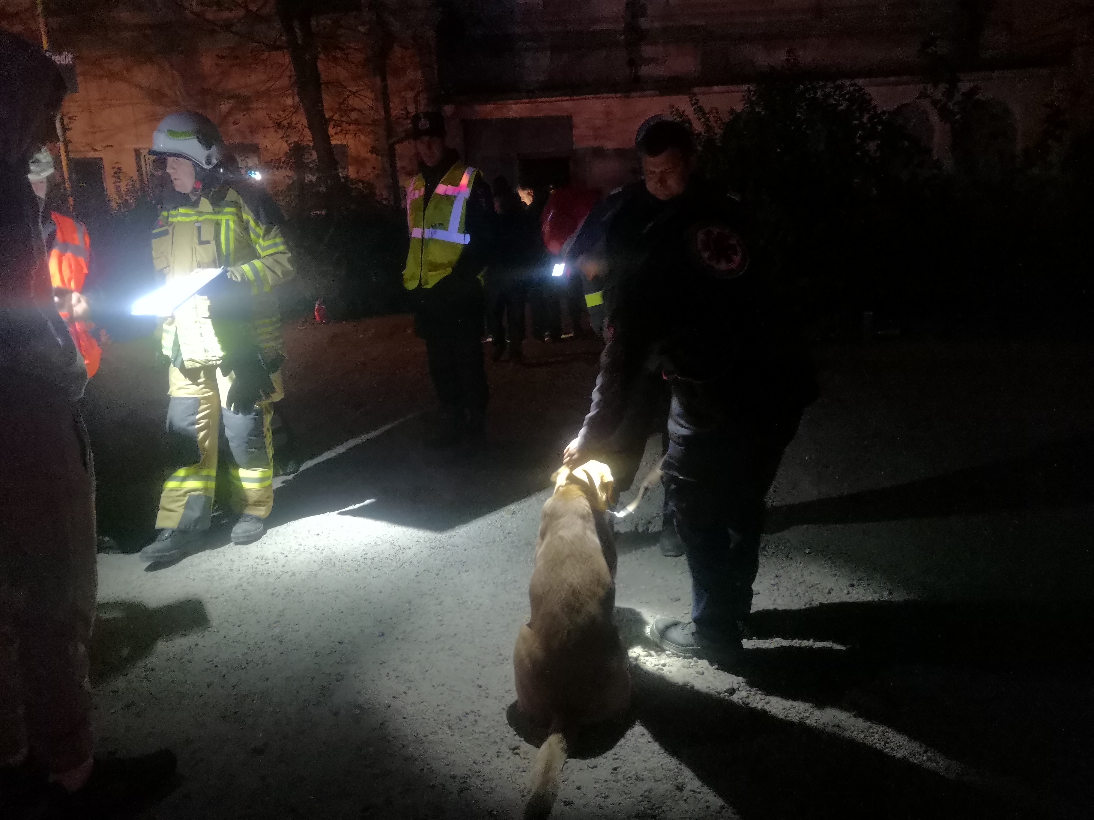 • S-a facut o verificare interna a disponibilitatii fortelor de care dispunem: 3 caini atestati de daramaturi, 4 caini atestati de mediu natural, 7-9 voluntari fara caini.